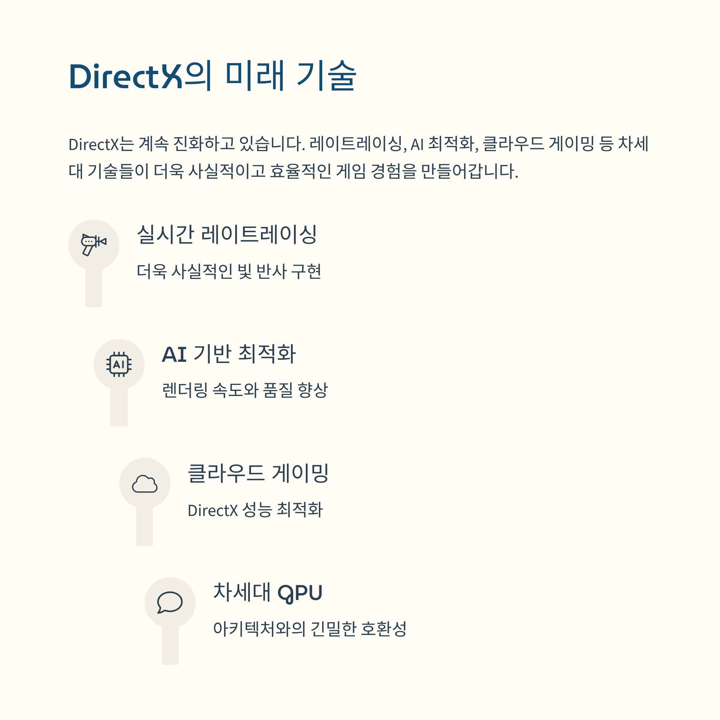 DirectX는 계속 진화하고 있습니다. 최근에는 레이트레이싱(Ray Tracing)과 같은 기술이 주목받으면서 더욱 사실적인 그래픽을 구현할 수 있게 되었어요. 앞으로는 AI와 결합하여 게임 개발 효율성을 높이고, 더 나아가 클라우드 게임 환경에서도 최적화된 성능을 보여줄 것으로 기대됩니다.