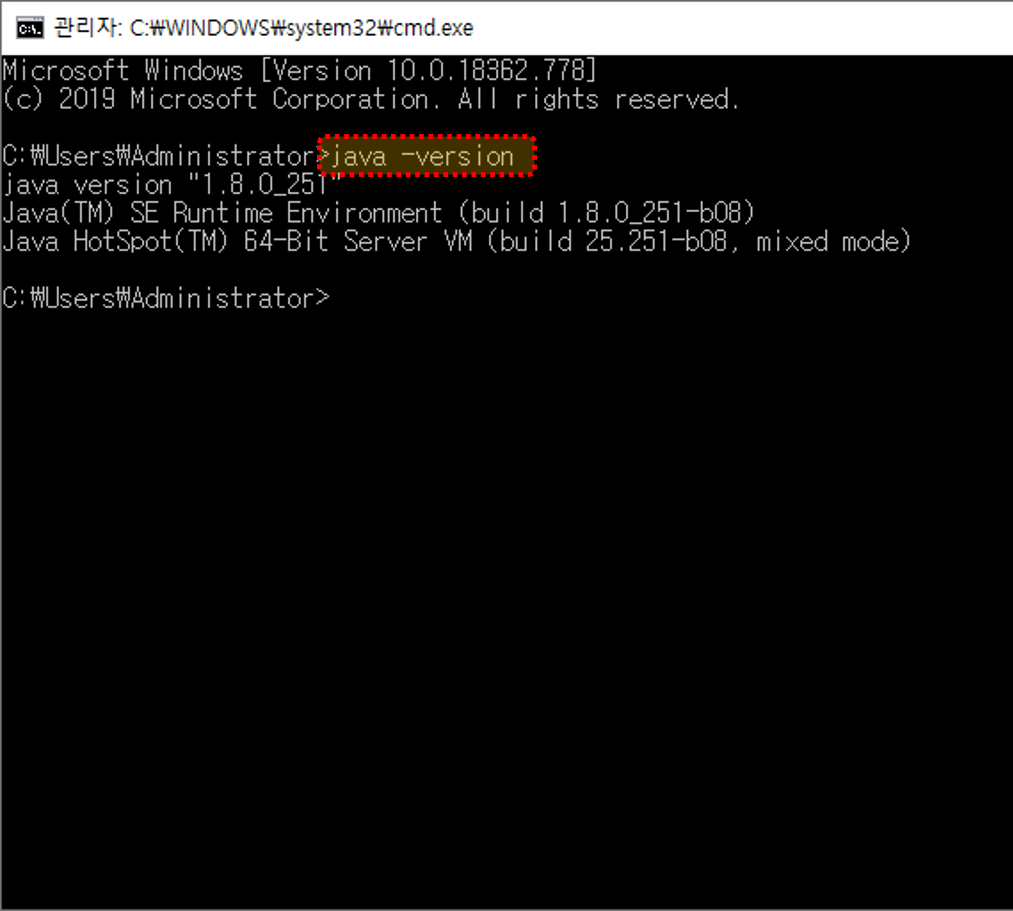 도스 창에 java -version (설치된 jdk 버전을 표시하는 명령)을 입력하여 아래 이미지와 같이 버전이 표시되면 정상 설치된 겁입니다.