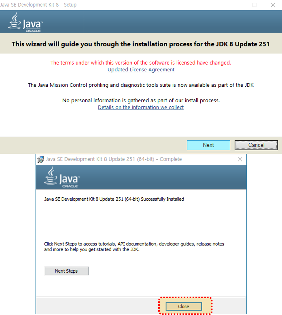 다운로드한 설치 파일을 실행하고 변경 없이 next로 진행 후 설치가 완료되면 close 클릭해 종료합니다.