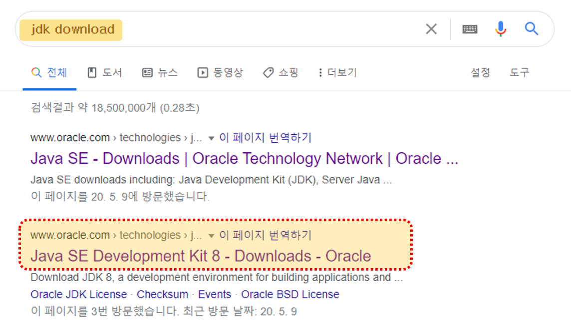 (검색창에 jdk download 검색-->노락색 박스로 표시된 곳 클릭)
