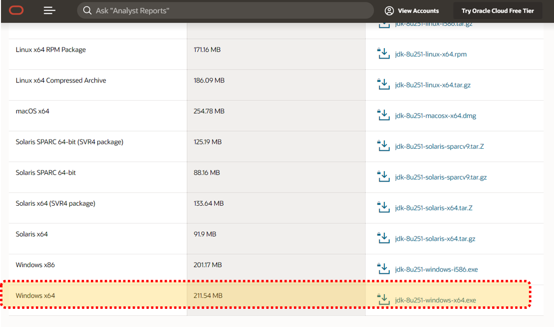 다운로드하기 위해선 오라클 개정을 만든 후 로그인해야 합니다.